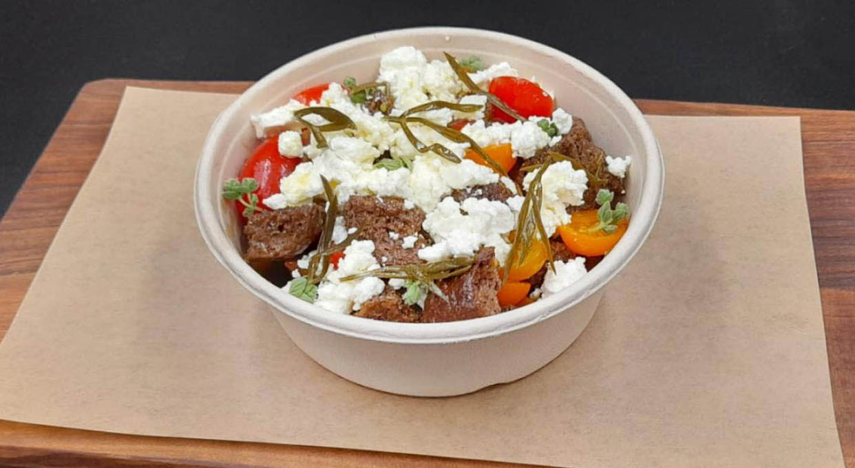 cretan cherry tomatoes with kritamo, fresh oregano, carob croutons, ex. virgin olive oil and xinomizithra 12,40€