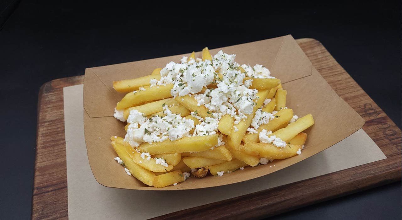 ✓ Fresh fried potatoes with feta cheese and fresh oregano 9,40€